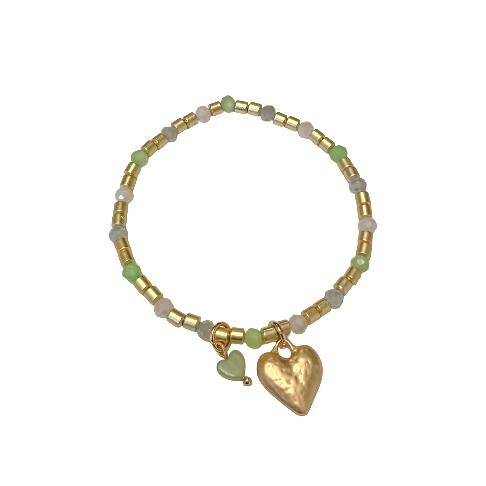 Gold-Tone Heart Charm Stretch Bracelet with Green Stones