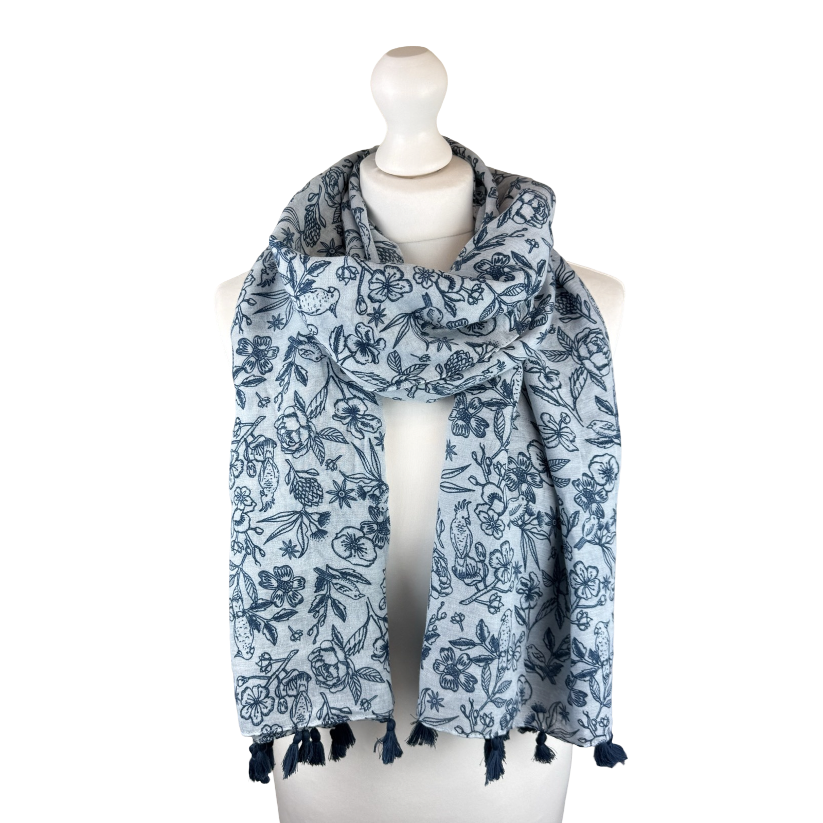 SHLP1604 Blue Botanical Bird Print Scarf (Colour as shown)