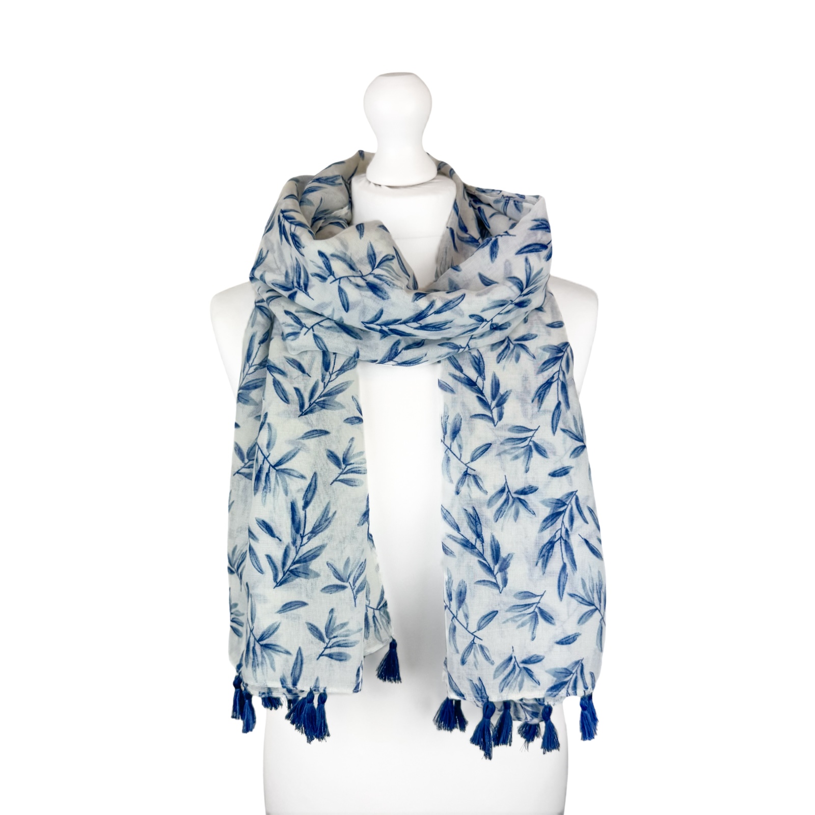 Elegant Blue Leaf Print Scarf (Colour as shown)