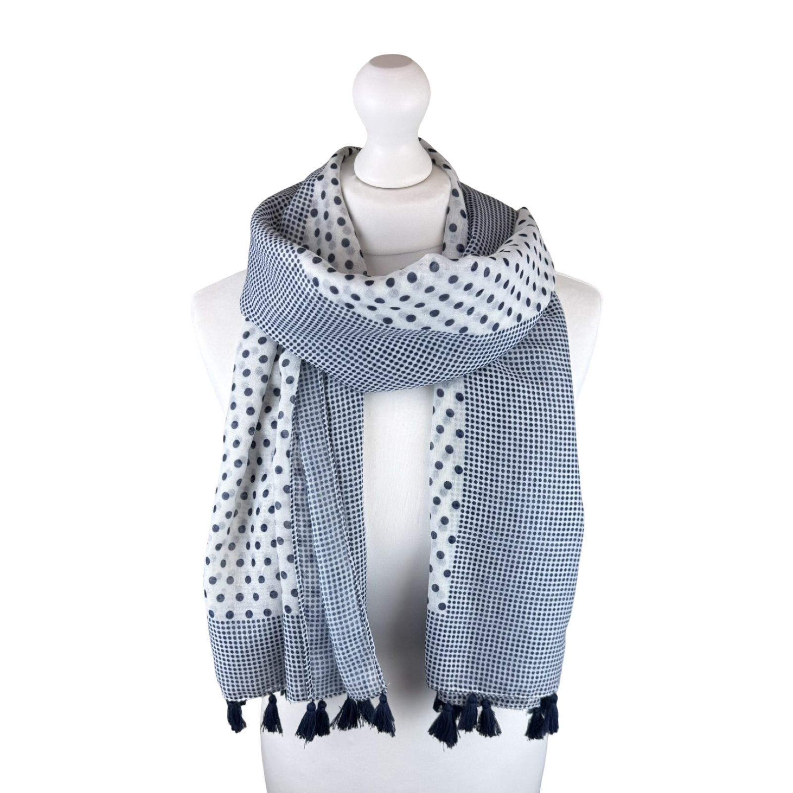 White & Navy Polkadot Print Scarf (Colour as shown)