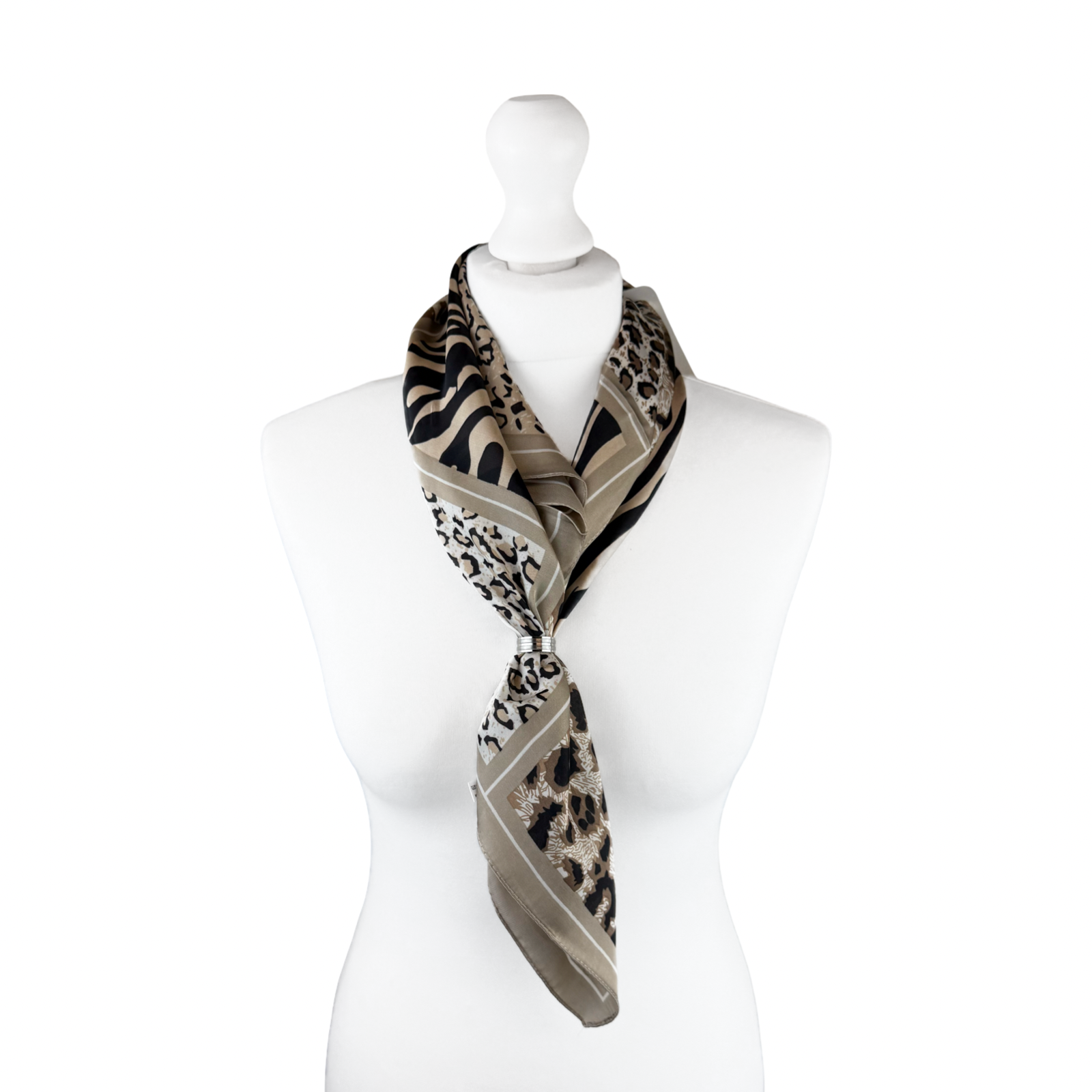 Animal Print Silk-Feel Square Scarf & Scarf Ring (3 Assorted Colours)