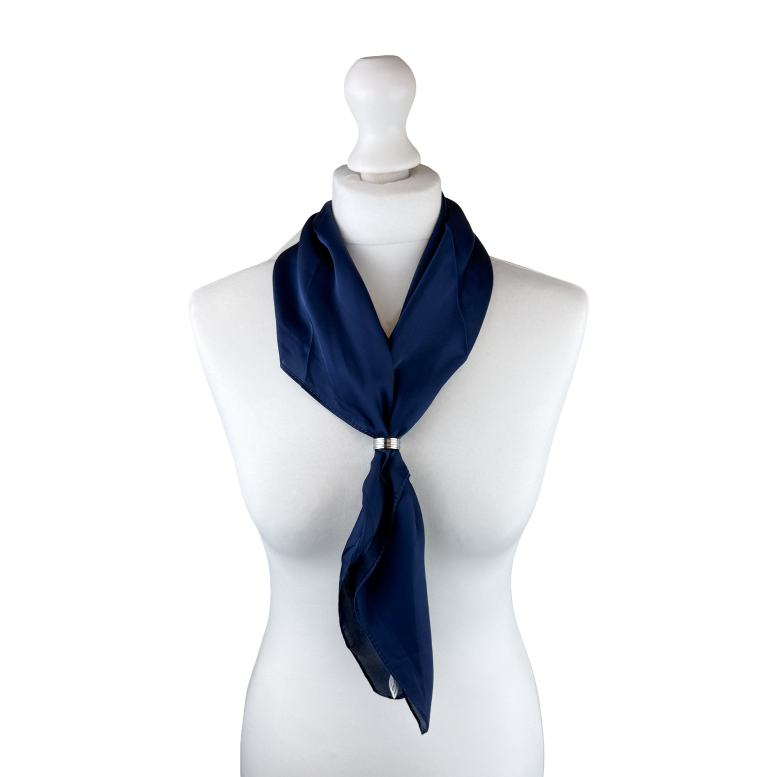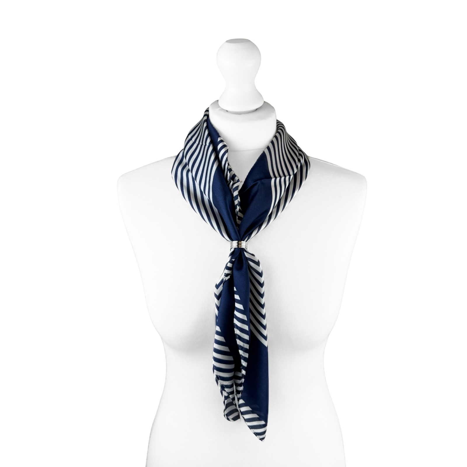 Navy & White Stripe Silk-Feel Square Scarf & Scarf Ring (Colour as Shown)