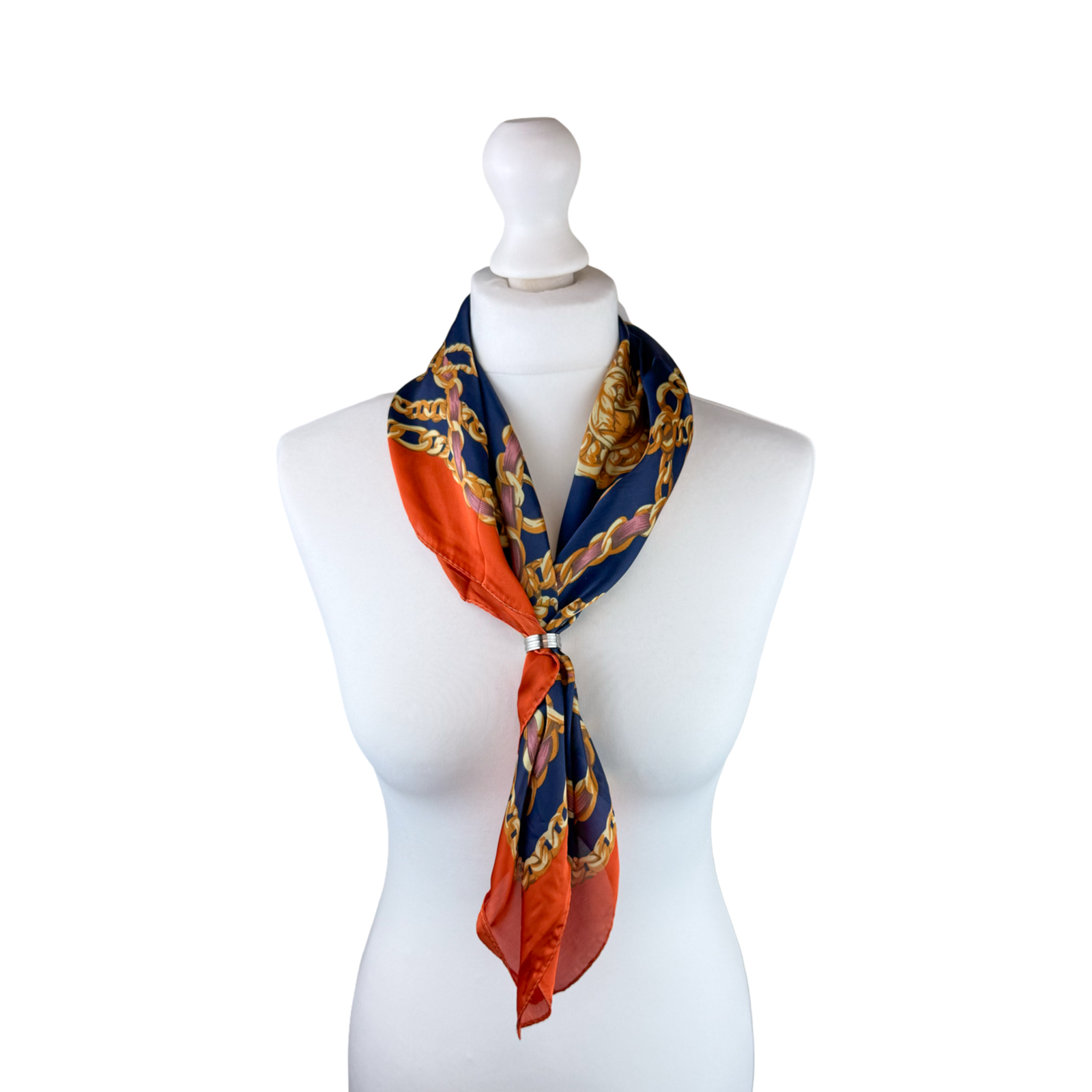 Classic Print Silk-Feel Square Scarf & Scarf Ring (3 Assorted Colours)