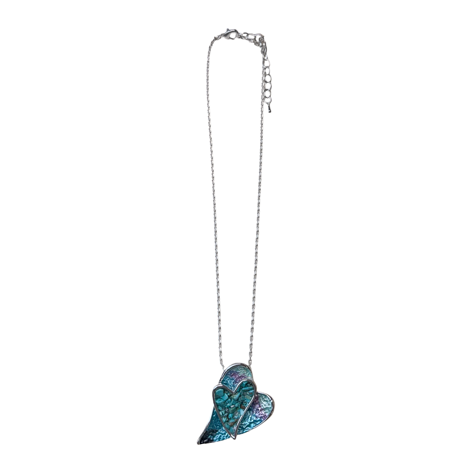 2011199GN Tilly Teal Stone Heart Pendant Necklace