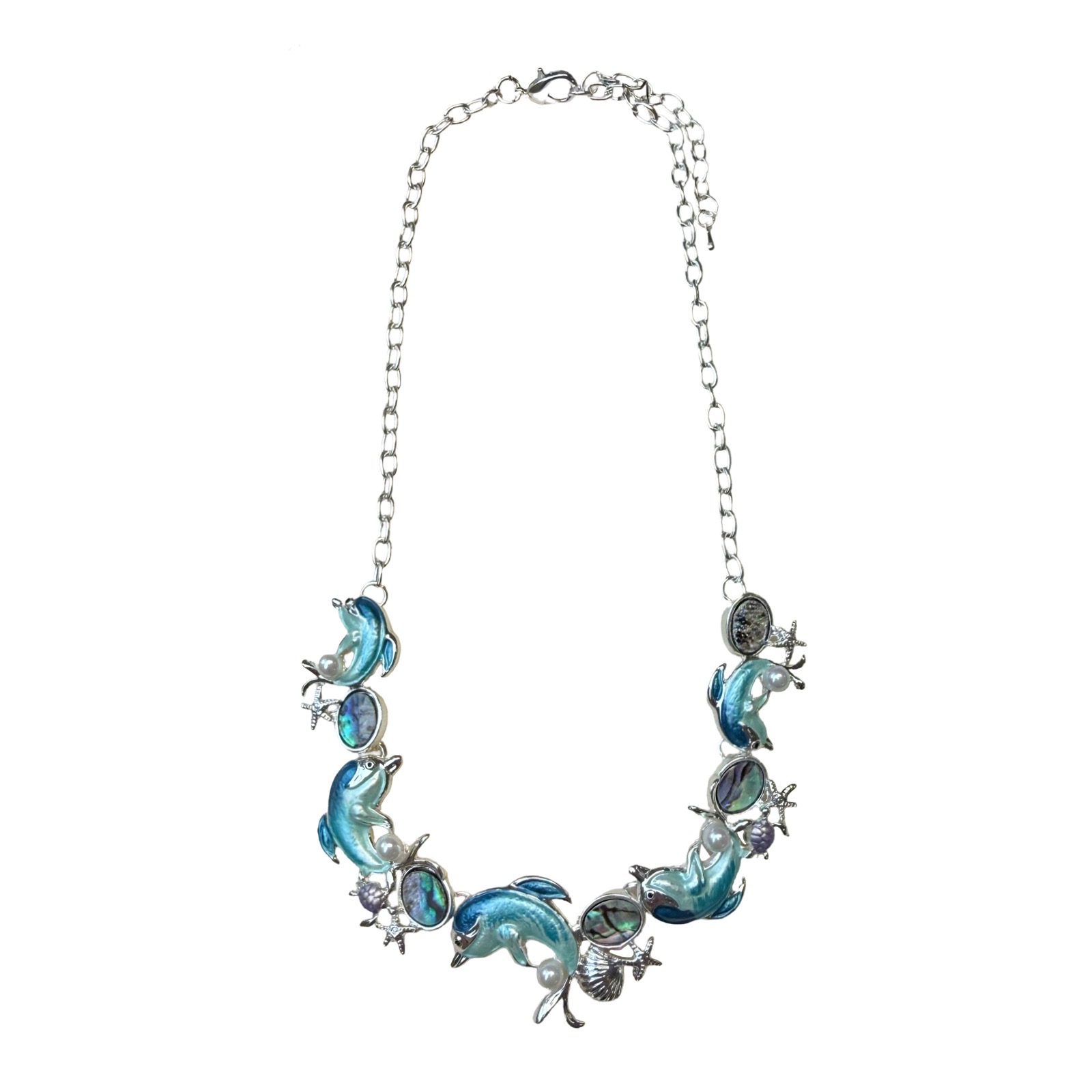 2011385S Silver-Tone Crystal Starfish Longline Necklace