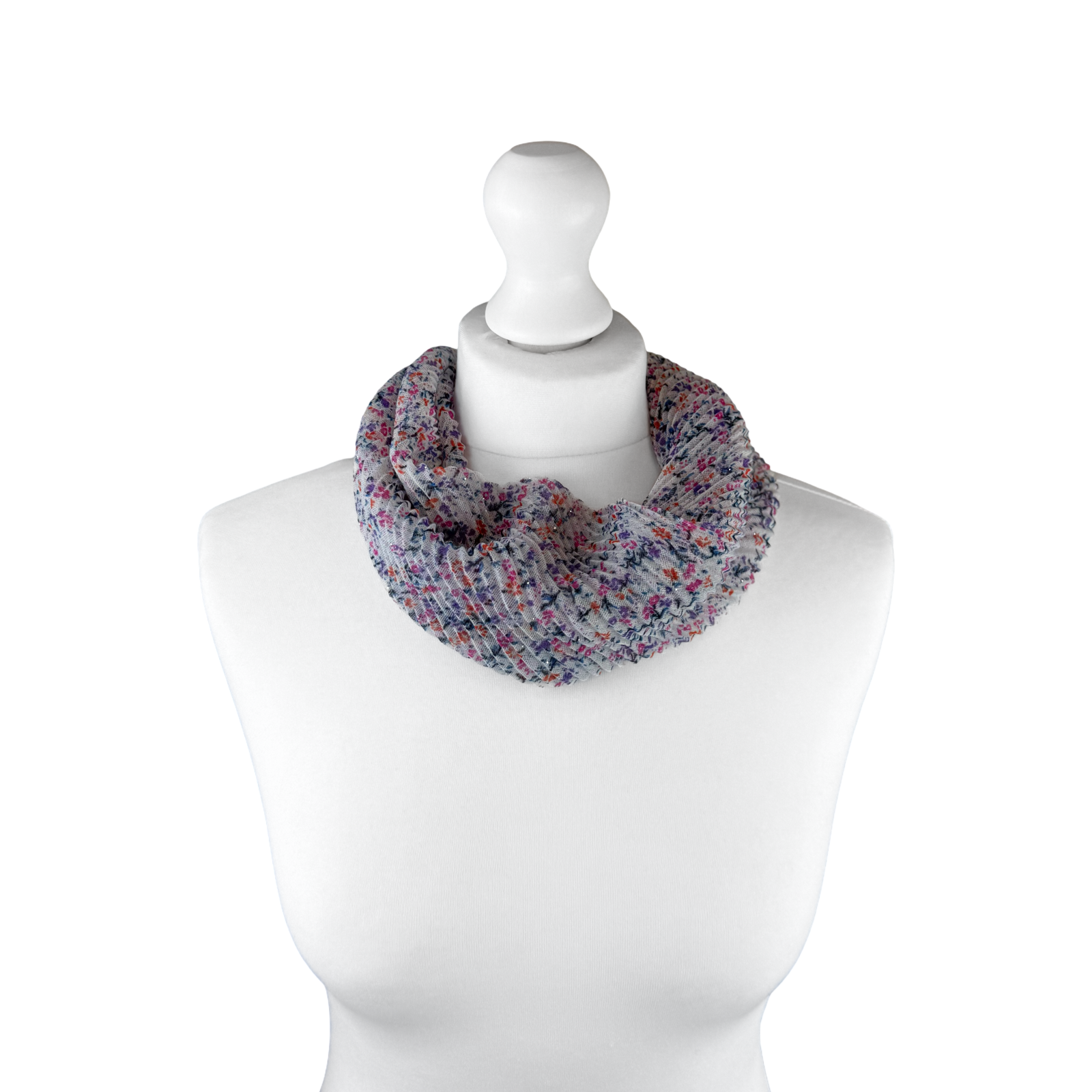 Floral Embroidery-Effect Magnetic Crinkle Scarf with Glitter Detailing (3 Assorted Colours)