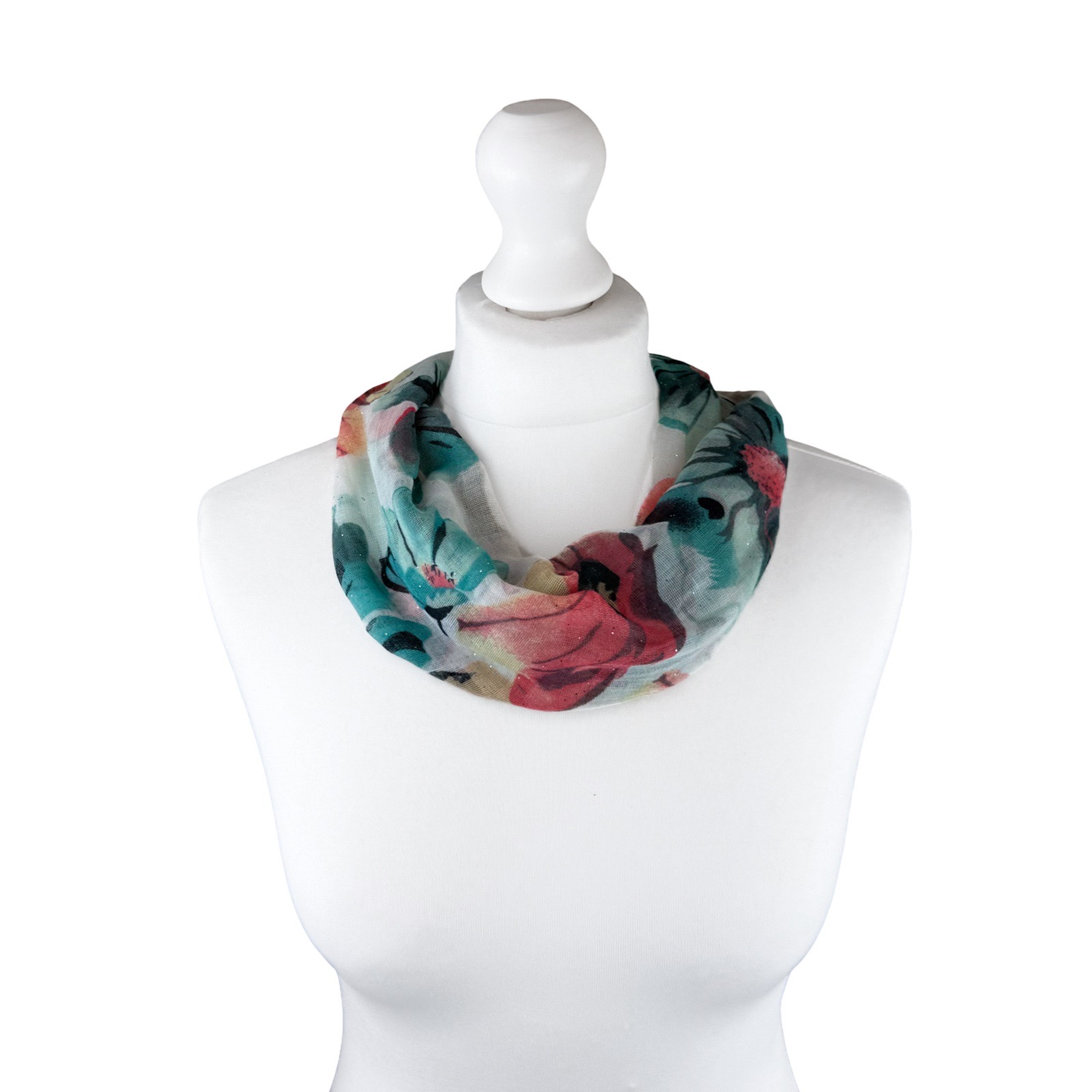 Bold Summer Floral Print Magnetic Scarf with Glitter Detailing (3 Assorted Colours)