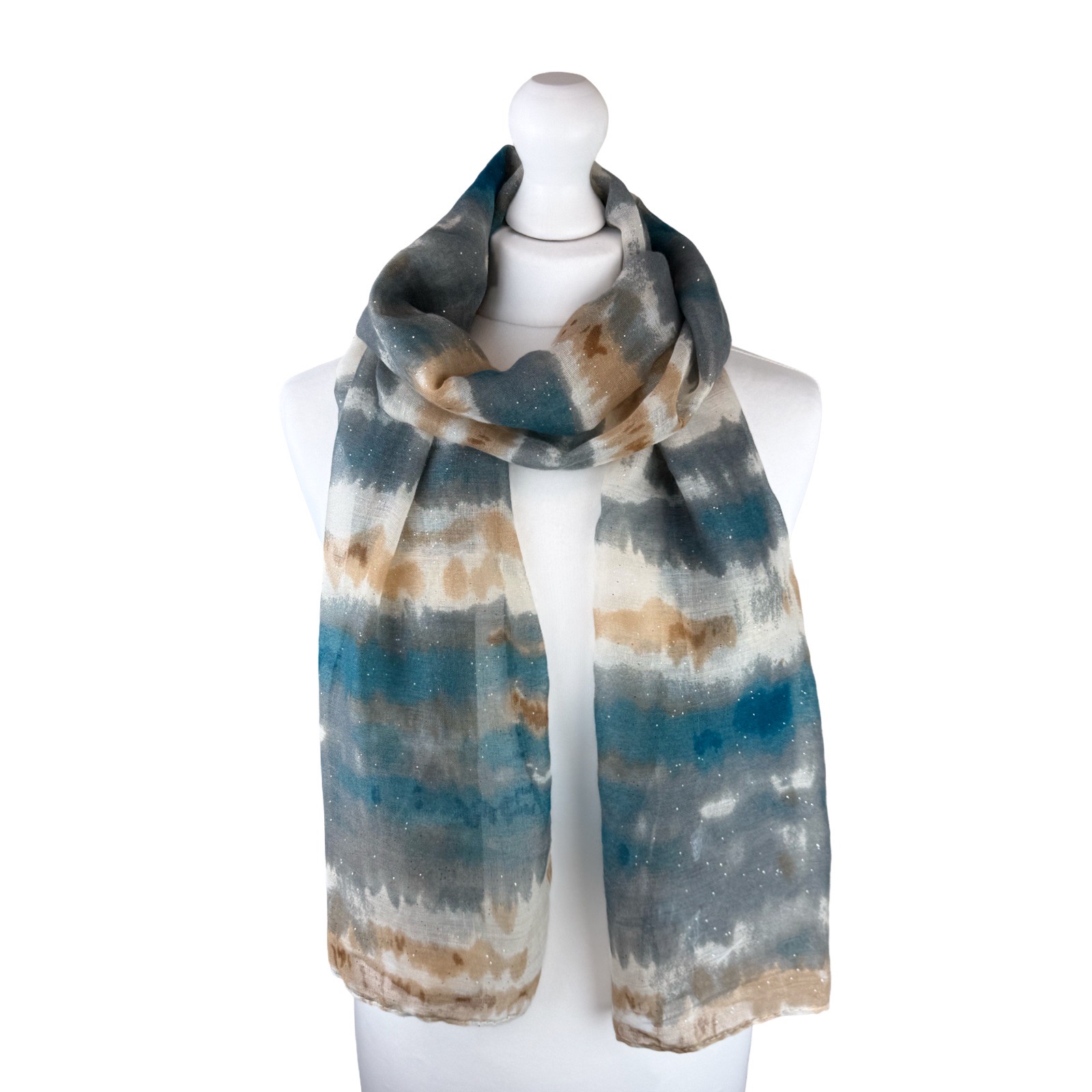 Summer Horizon Print Scarf in Blue with Glitter Detailing (Colour as Shown)