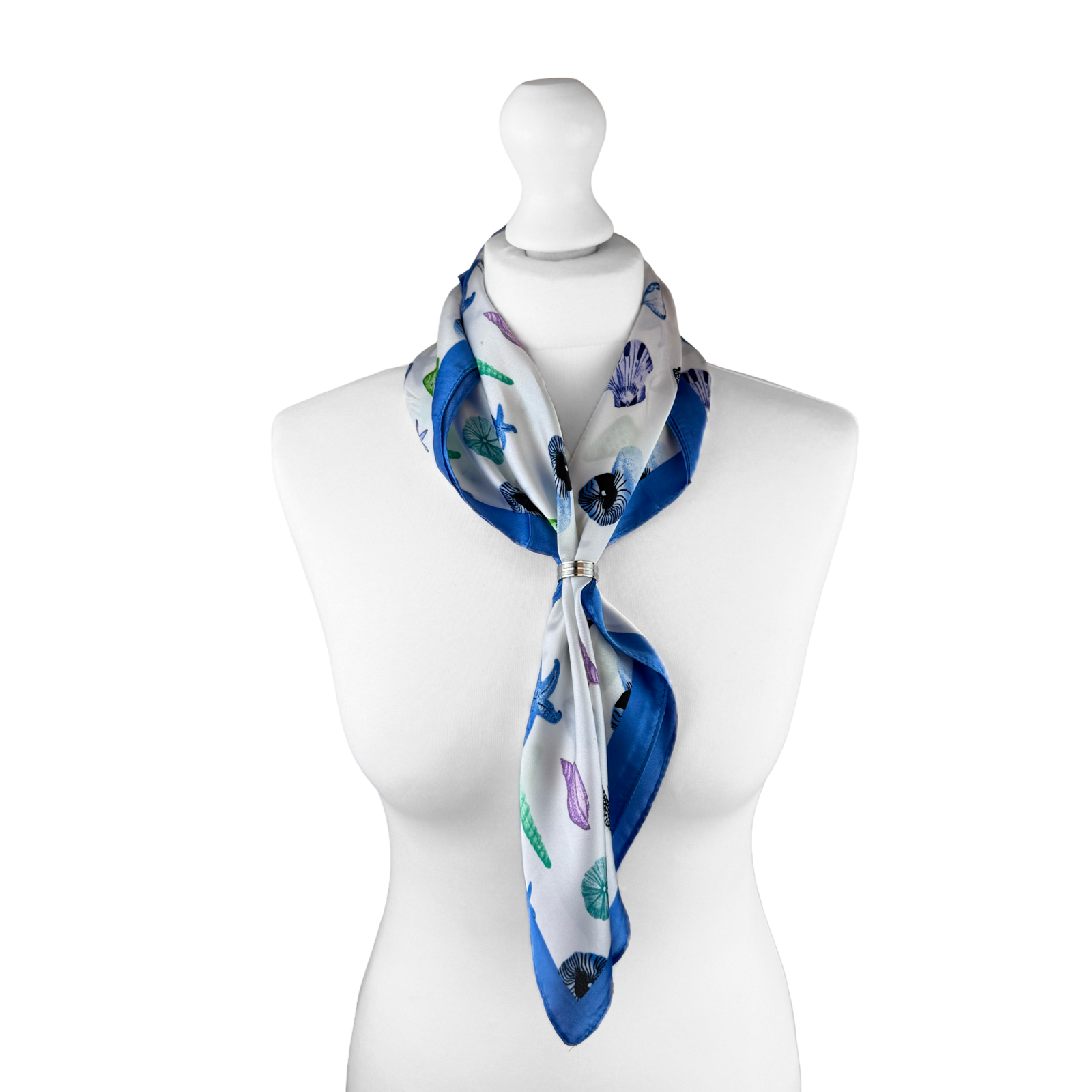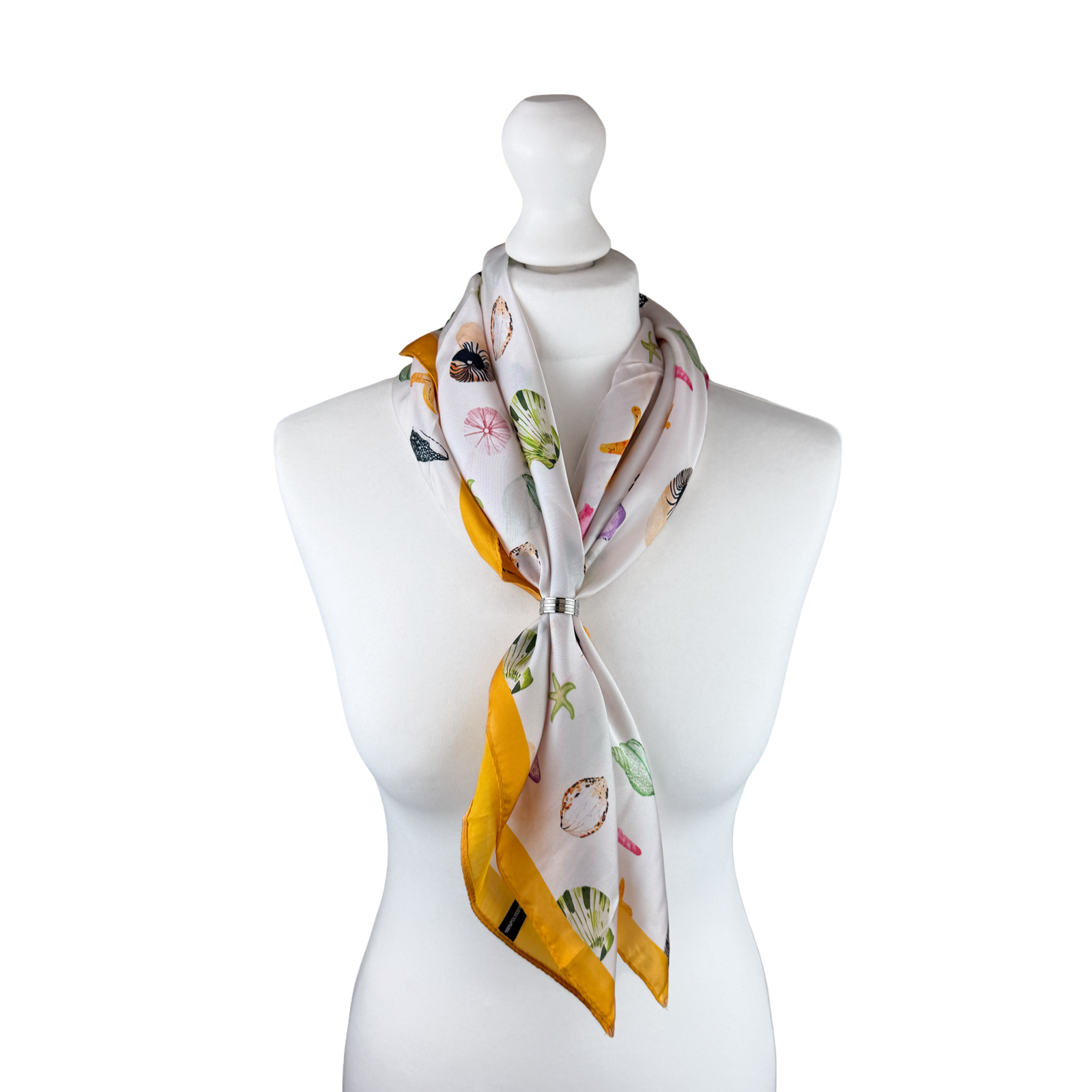 Seashell Print Silk-Feel Square Scarf & Scarf Ring (3 Assorted Colours)