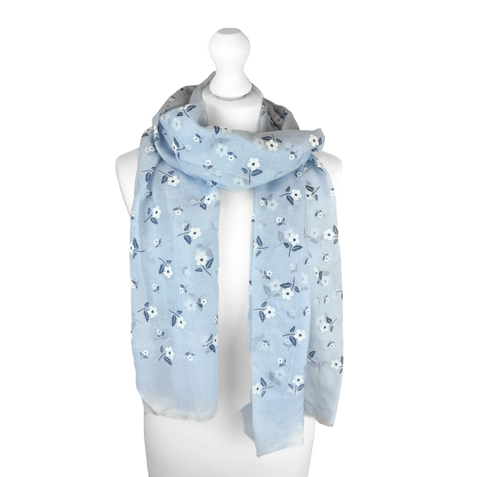 Blue Classic Summer Floral Print Scarf with Glitter Detailing (Colour as Shown)