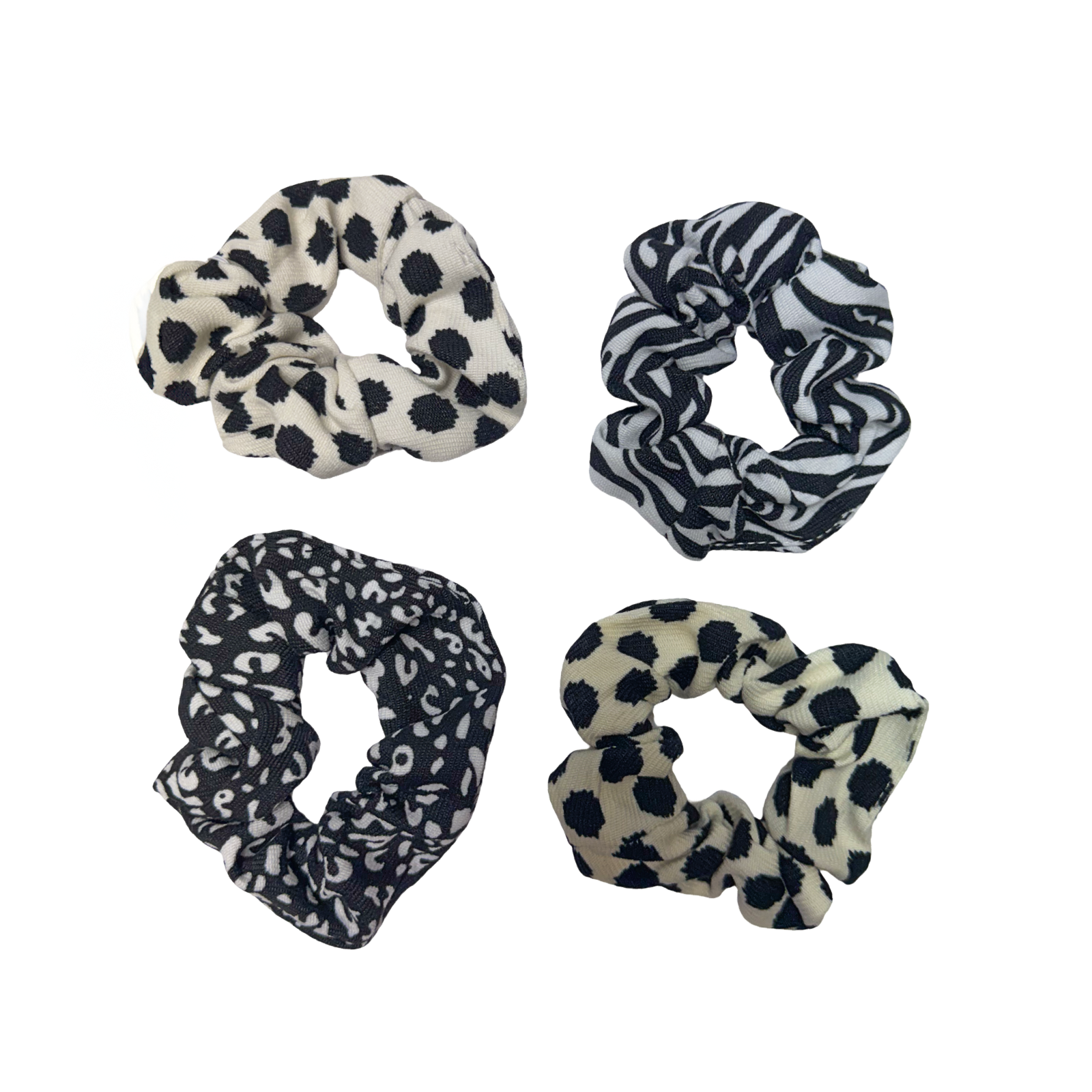 SH8157 Monochrome Animal Print Fabric Scrunchies