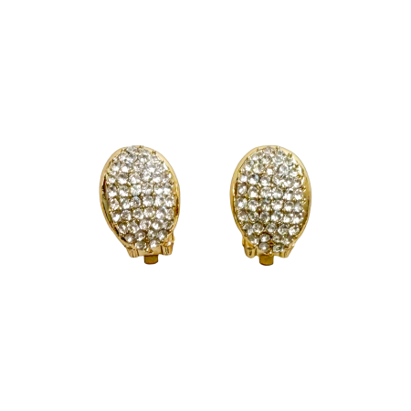 Diamanté Crystal Oval Clip Earrings (Gold-Tone)