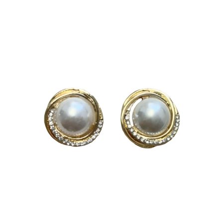 Elegant Round Faux Pearl Clip Earrings with Gold-Tone Halo