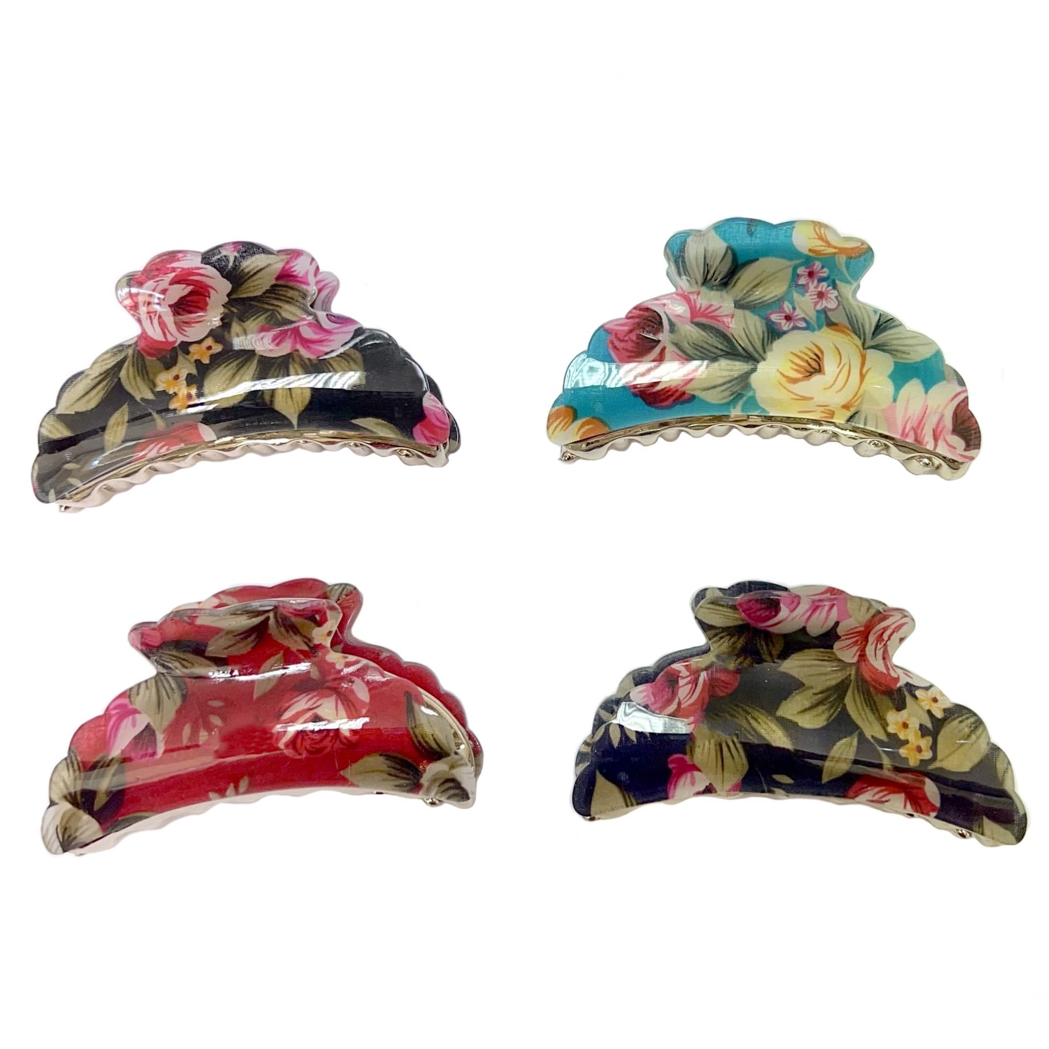 Floral Print Acrylic Hair Clamp in 4 Assorted Colours
