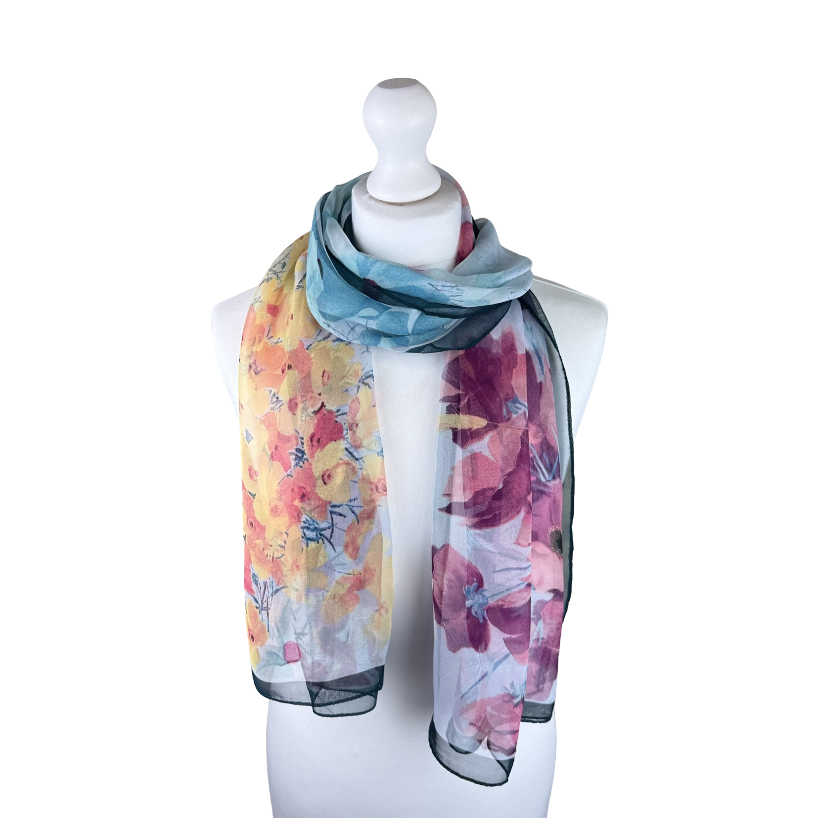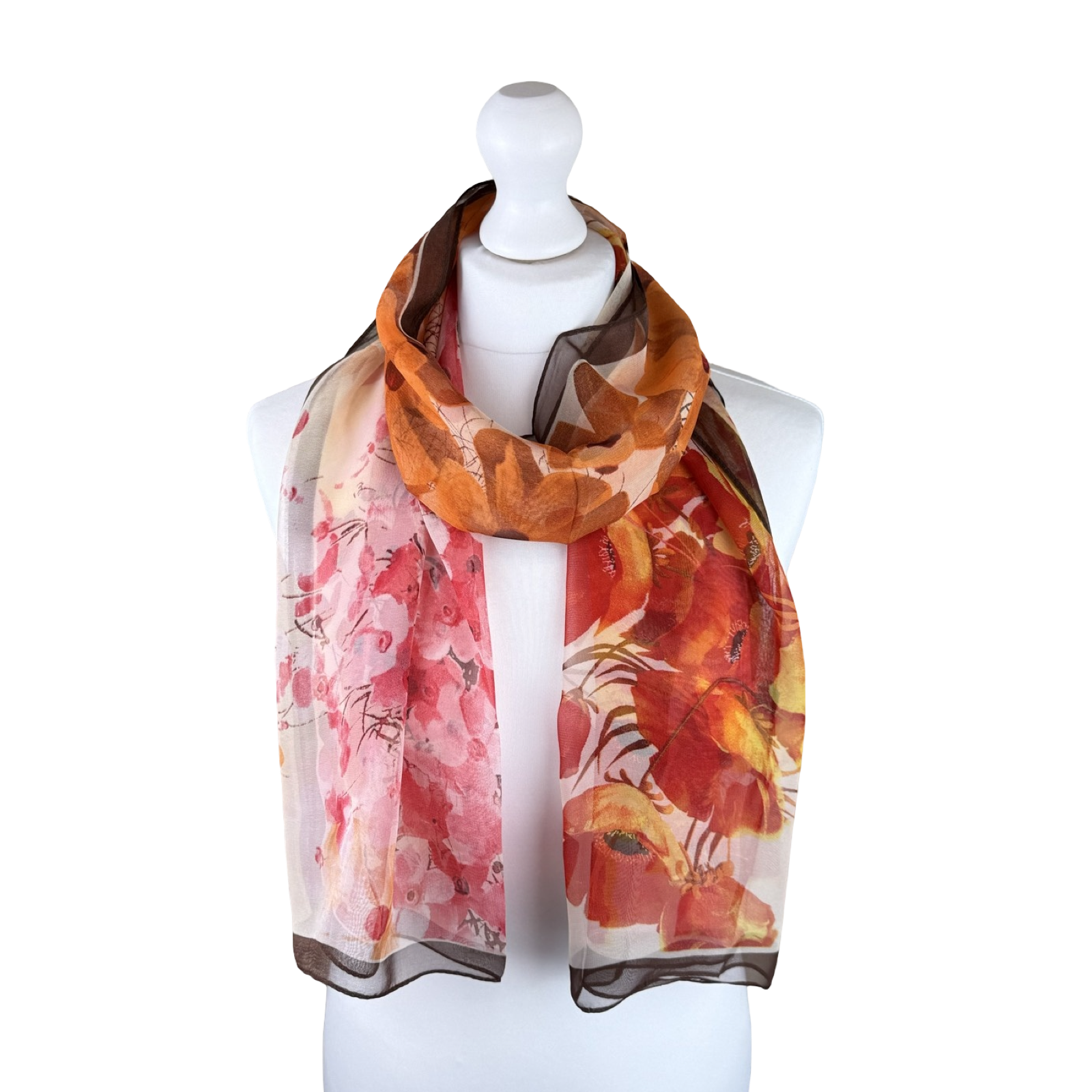 Elegant Exotic Poppy Print Chiffon-Style Scarf (4 Assorted Colours)