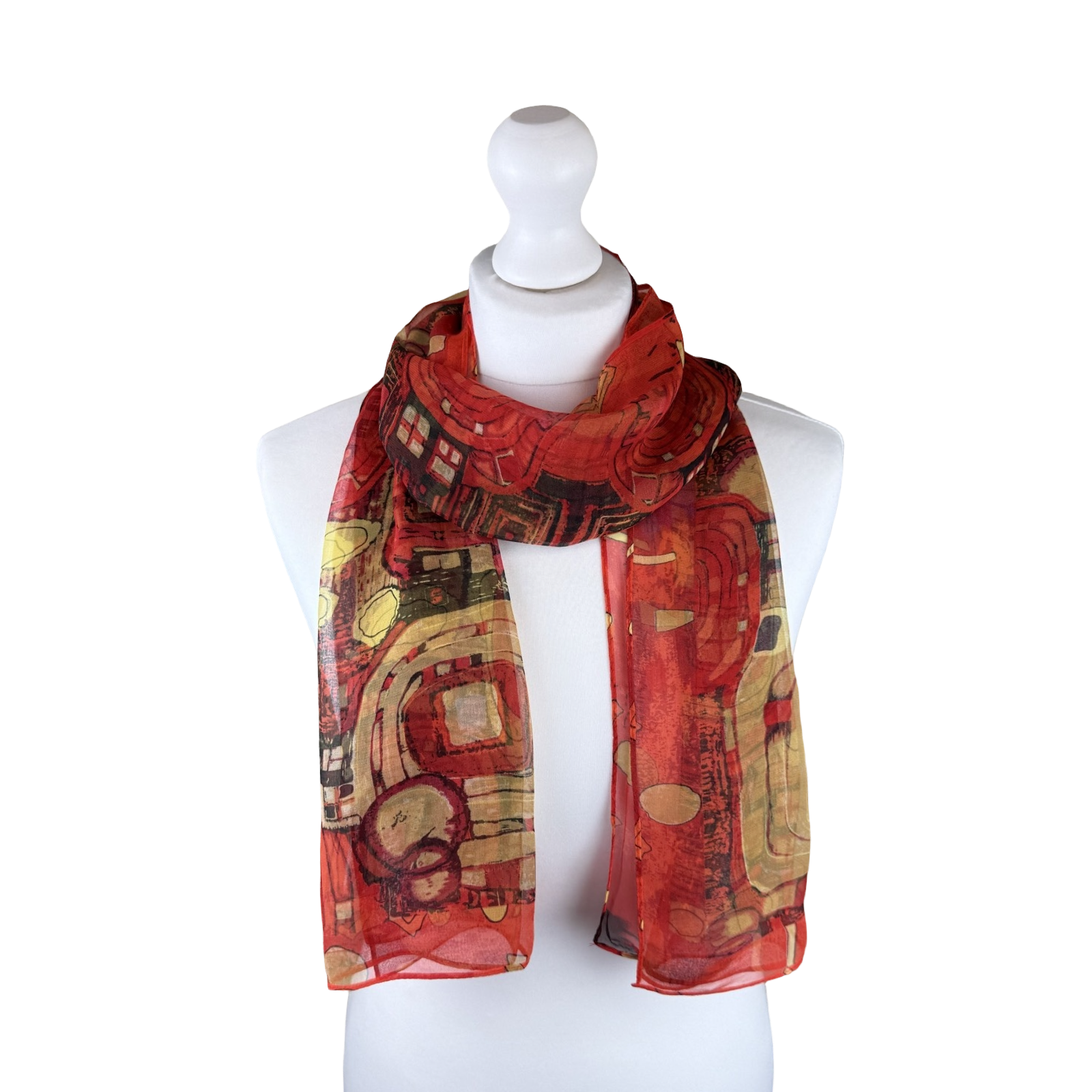 Abstract Art Print Chiffon-Style Scarf (3 Assorted Colours)