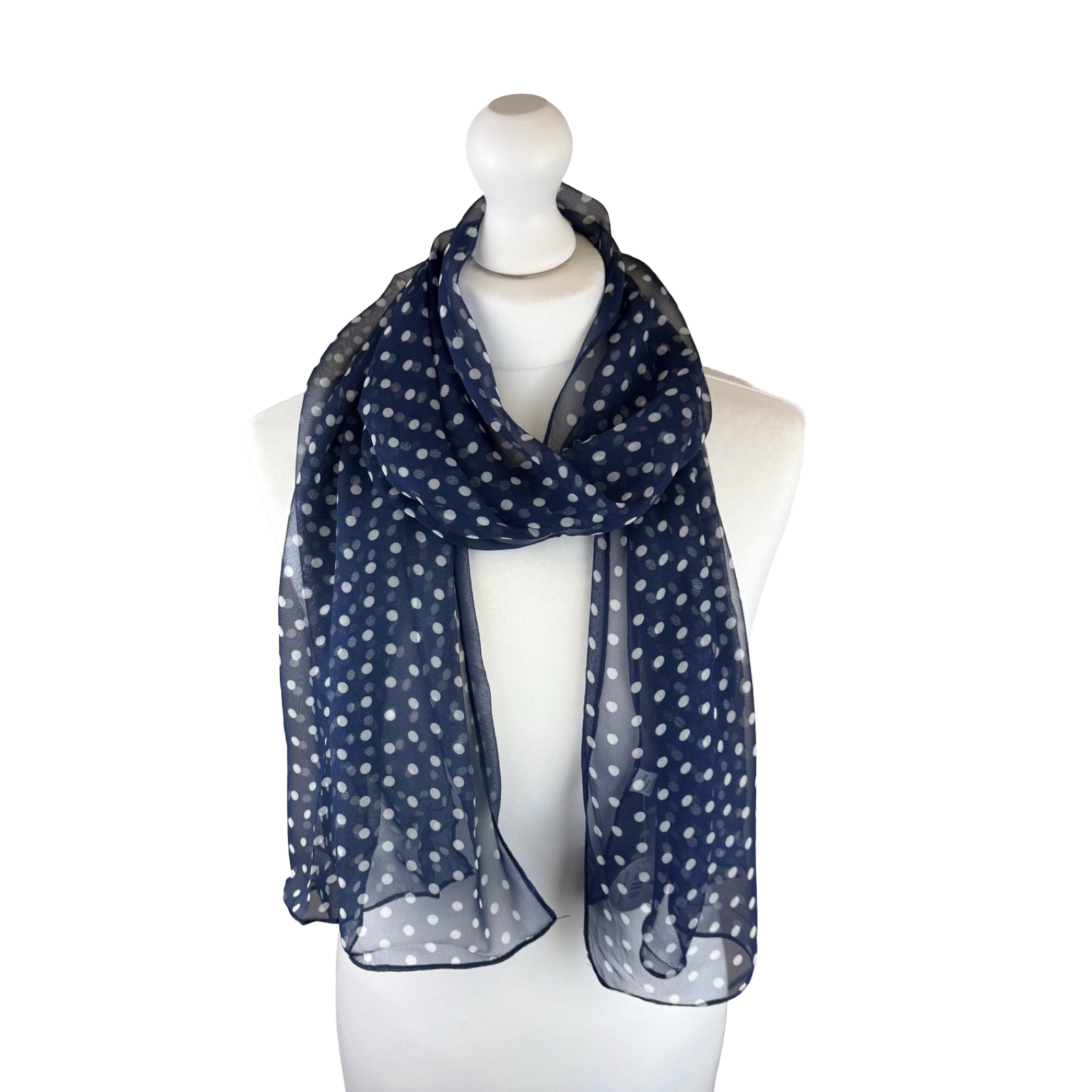 SHCH1504 Navy, White & Black Polkadot Print Chiffon-Style Scarf (3 Assorted Colours)
