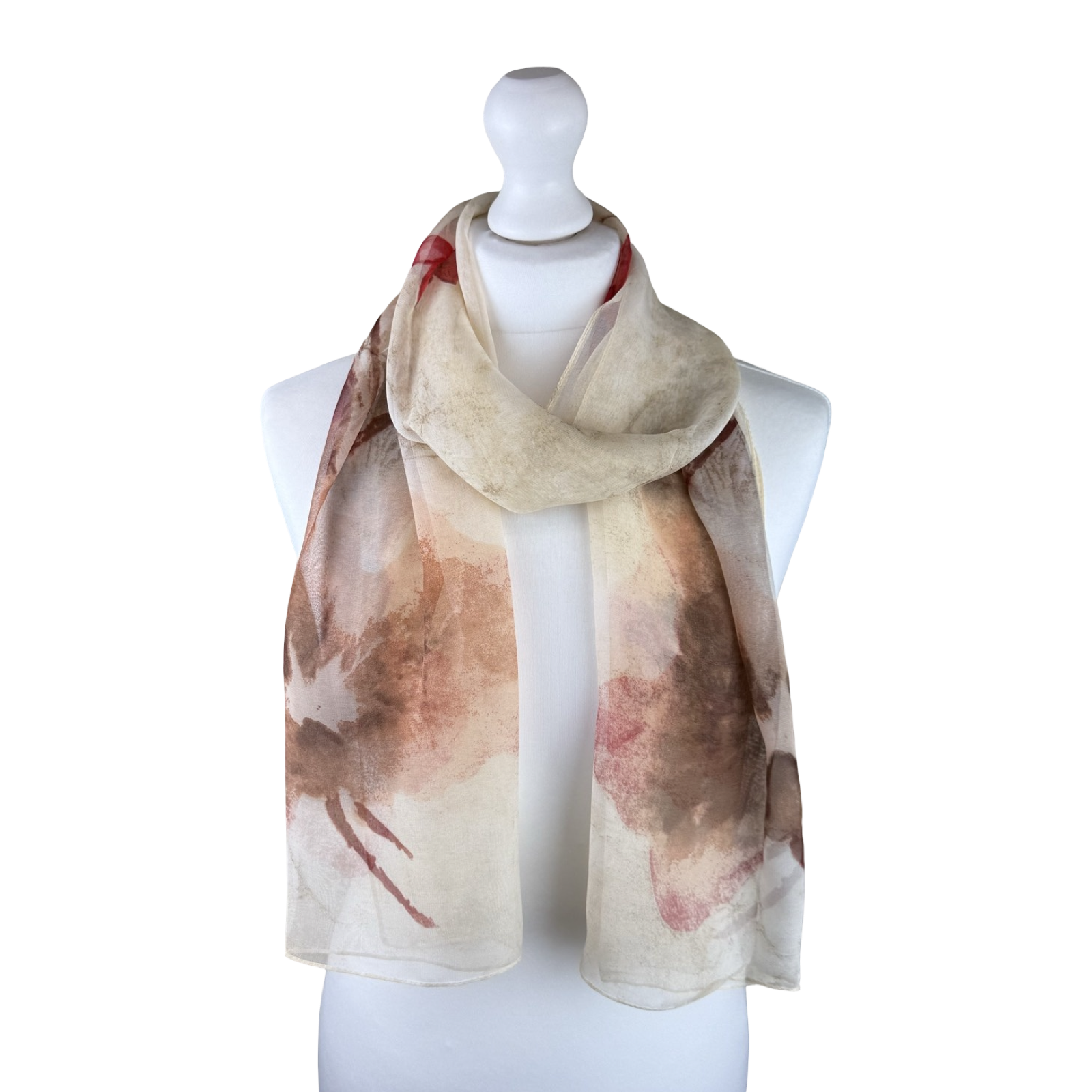 Abstract Watercolour Flower Print Chiffon-Style Scarf (3 Assorted Colours)