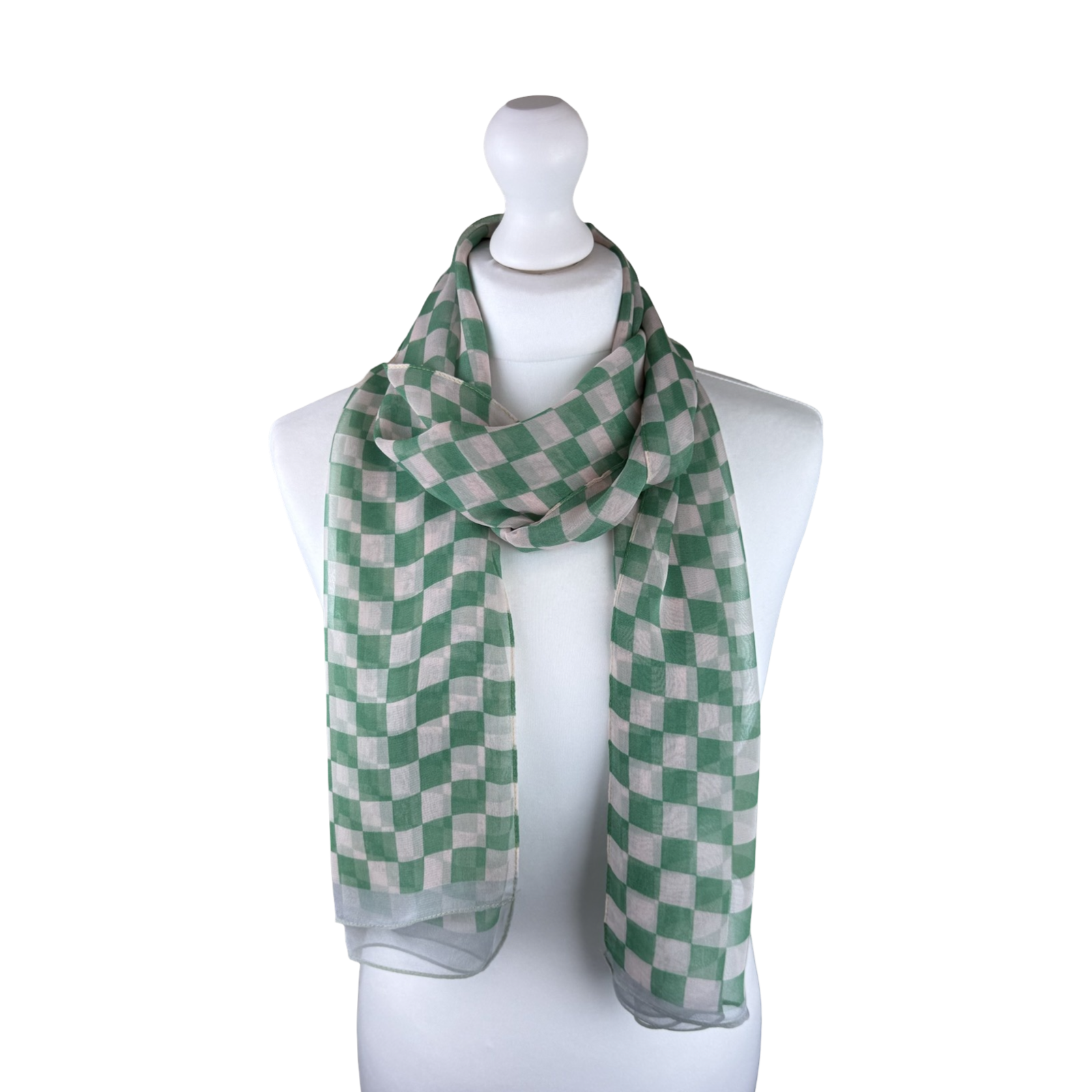 Patel Checkerboard Print Chiffon-Style Scarf (3 Assorted Colours)