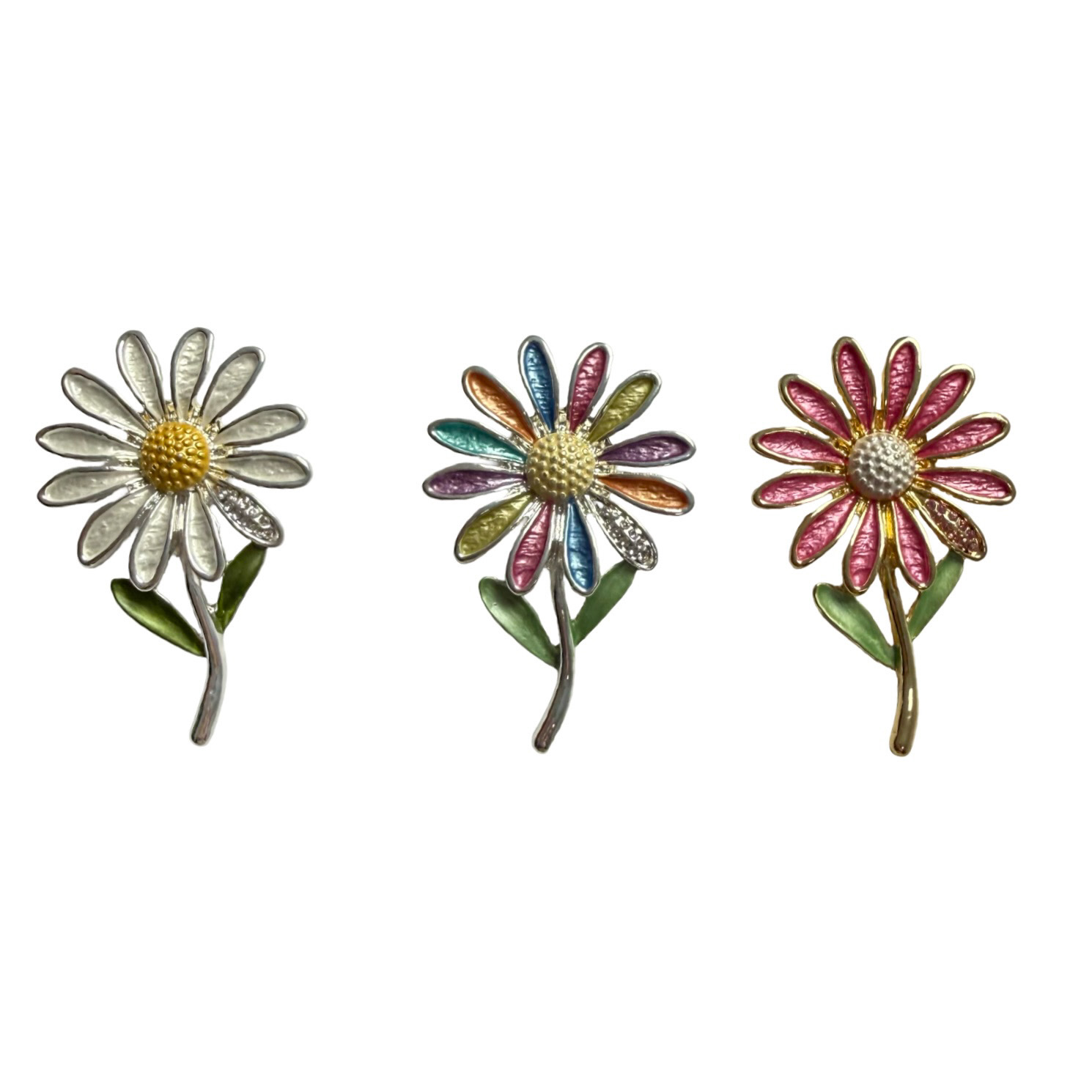 SH1040 Enamelled Daisy Design Magnetic Brooch/Scarf Clip