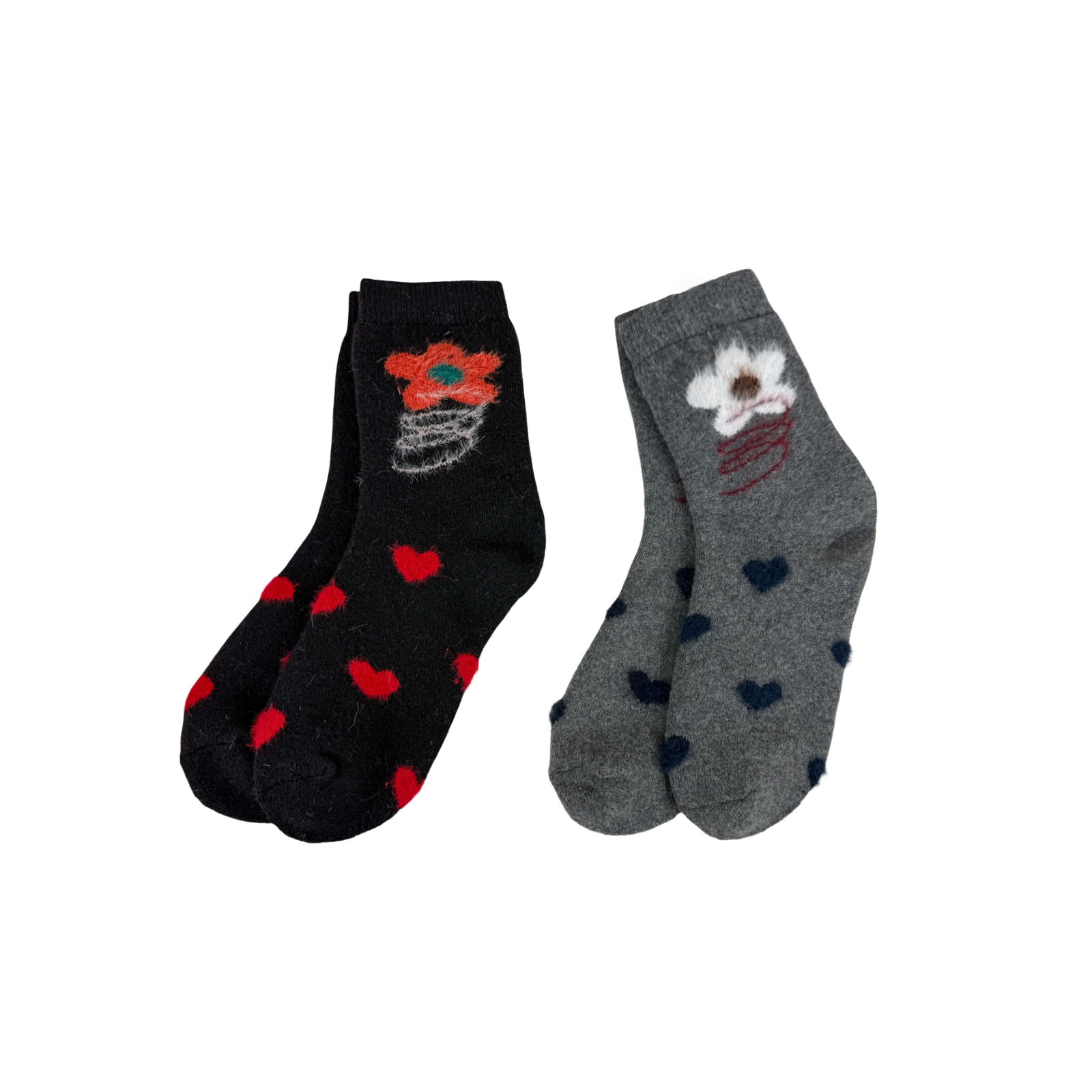 Flower & Love Heart Wool Blend Socks (5 Assorted Colours)